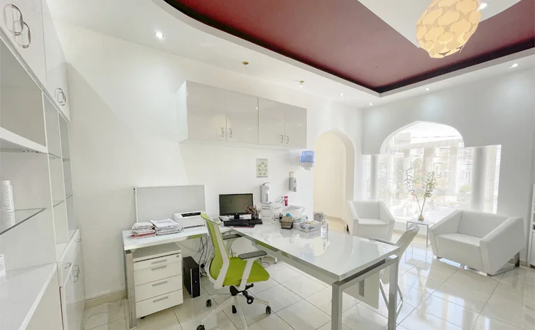توجد العيادة في موقع ملائم في القرم مقابل مجمع القرم التجاري (QCC) ، حيث ستجد نفسك في بيئة عالية في مستويات الراحة والترحاب؛ فلقد أنشأنا مكاناً مريحاً ستتلقى فيه عناية بالبشرة بأعلى جودة.